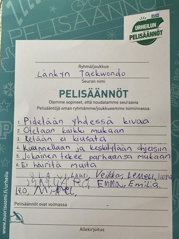 Seuran lasten ja nuorten 11.1.2021 päivittämät pelisäännöt:
