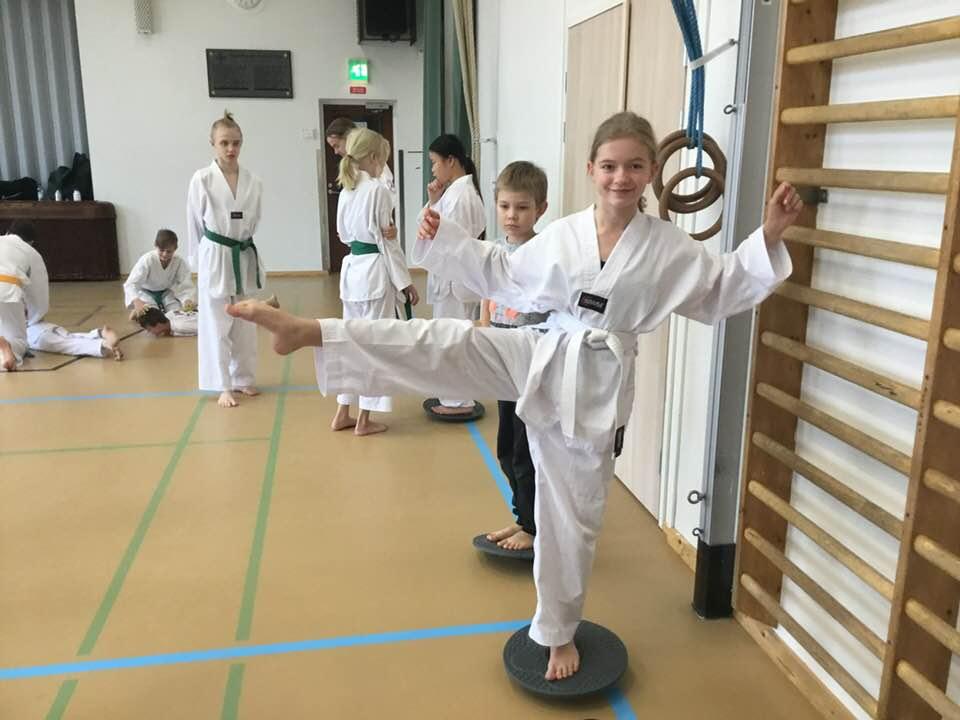 Lajiesittely uudelle alkeiskurssille ja läheisille 13.1.2018. Taekwondo on myös tasapainoa ja sitä voi harjoitella vaikka näin.
