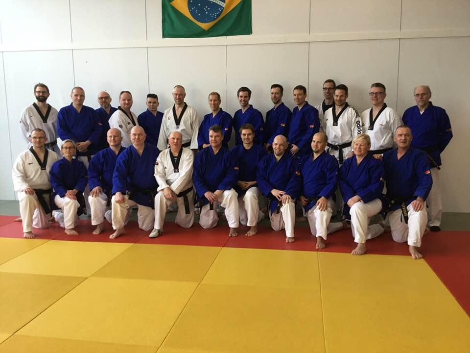 Ismo Hautalan, 5.dan, perinteisen tekniikan periaatteita -tapahtumaan 17.3.2018 osallistui yhteensä 38 harrastajaa. Jatkokurssi ja värivyöt ryhmäkuvassa.