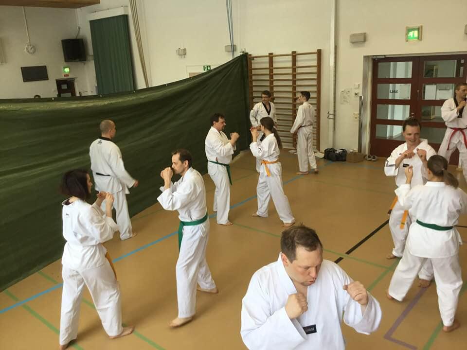 Dan-kokeiseen tähtäävissä Poomse-treeneissä Vihdin Nummelassa 20.7.2017: ainakin Vihdin ja Lohjan sekä Esa ja Anne Länkyn Tkd-seurasta. Tehtiin kaikki kahdeksan Taekgeuk-poomsea erilaisin harjoitttein (mm. peilikuvana) ja kolme ensimmästä mustien vöiden poomsea. Opettajana oli Helena Iivanainen, 4.dan, Vihdin seurasta. Kiitos hyvistä ja monipuolisista treeneistä.